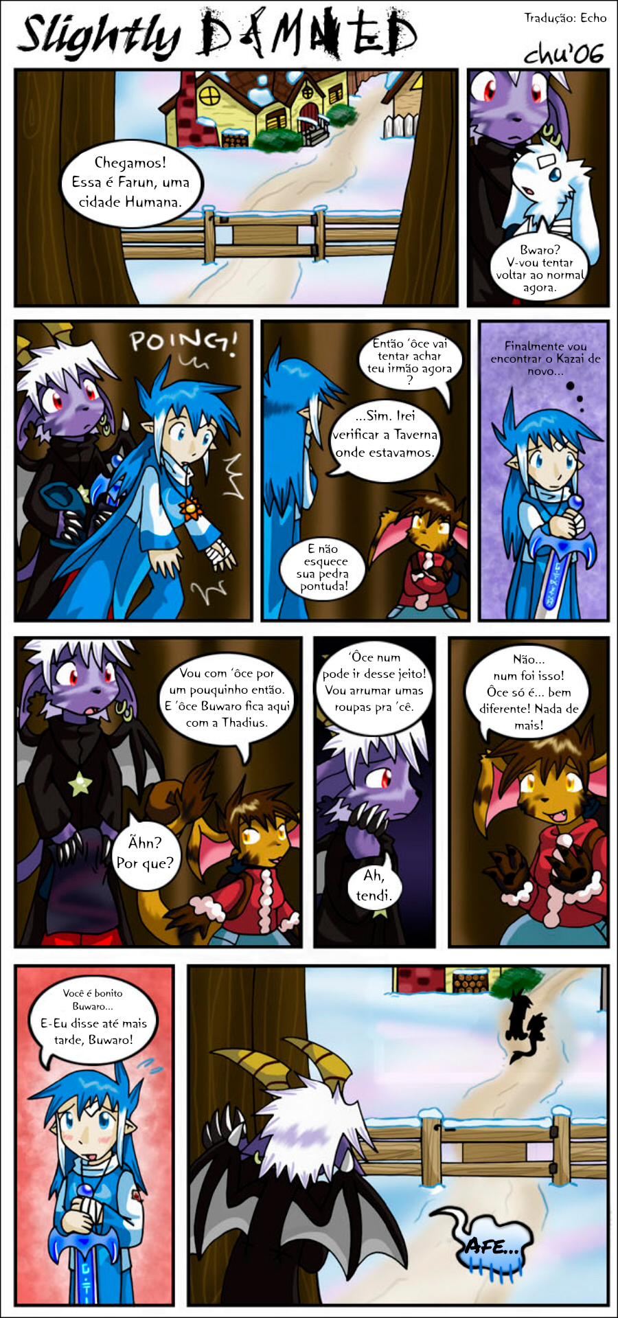 Hiya all! I'm gonna keep it short. July was a very busy month, and tomorrow I'll be off to another convention: Anthro Weekend Utah! I'm sorry I only managed to update Slightly Damned once this month. I did manage to get more pages done, but I decided I should wait until after I'm back from the convention to post more.