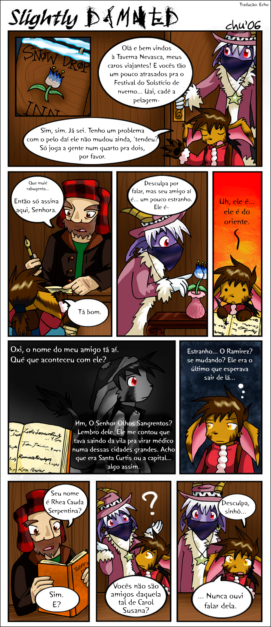 Hiya all! I'm gonna keep it short. July was a very busy month, and tomorrow I'll be off to another convention: Anthro Weekend Utah! I'm sorry I only managed to update Slightly Damned once this month. I did manage to get more pages done, but I decided I should wait until after I'm back from the convention to post more.