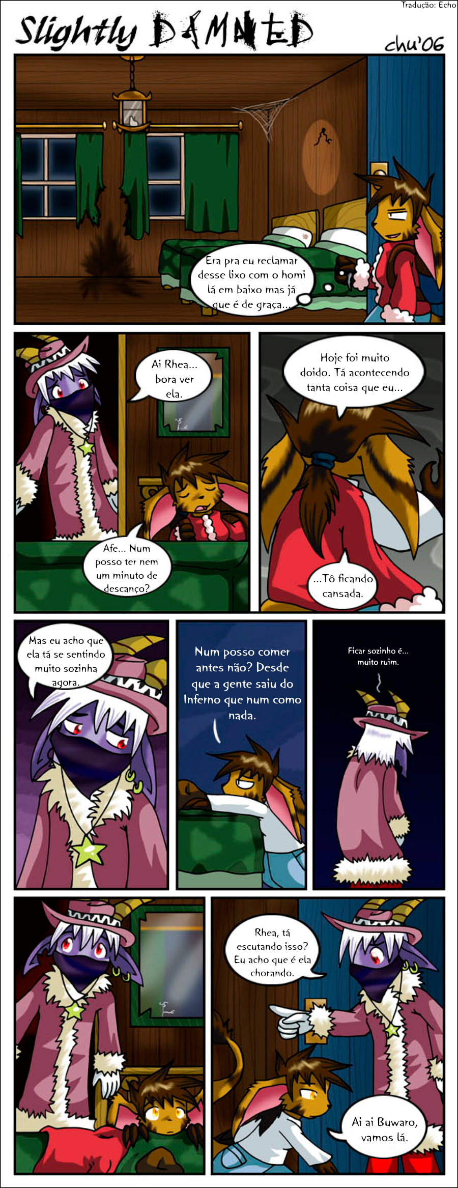 Hiya all! I'm gonna keep it short. July was a very busy month, and tomorrow I'll be off to another convention: Anthro Weekend Utah! I'm sorry I only managed to update Slightly Damned once this month. I did manage to get more pages done, but I decided I should wait until after I'm back from the convention to post more.