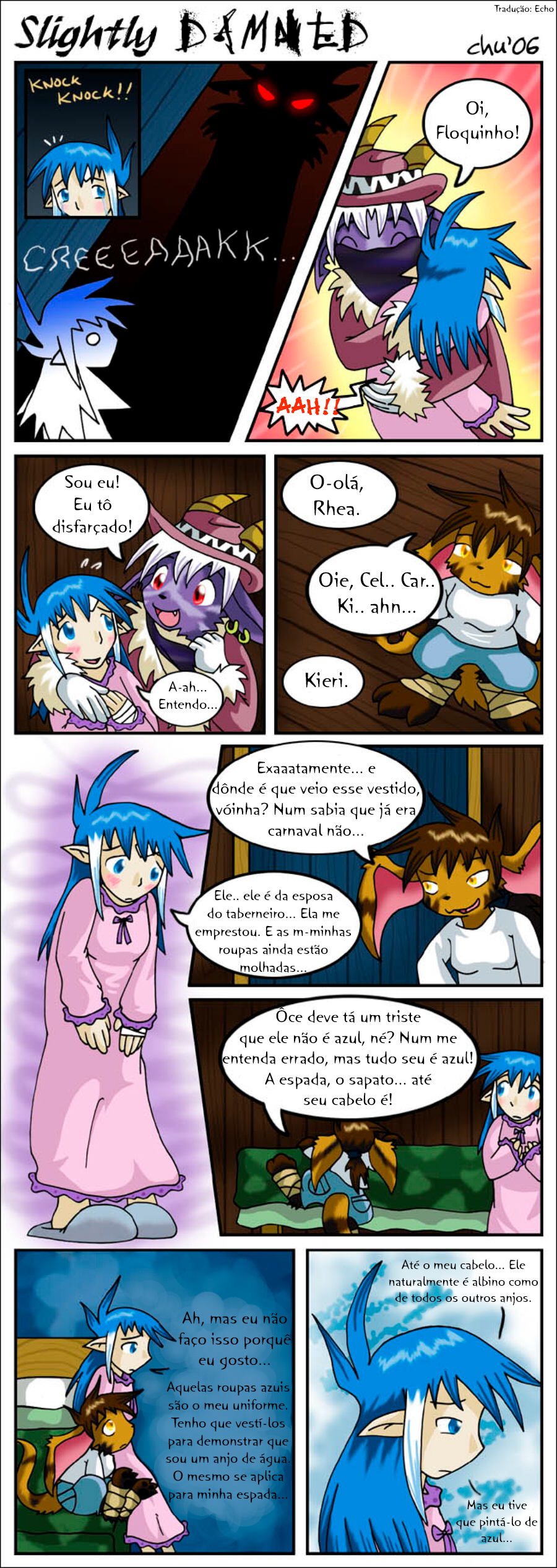 Hiya all! I'm gonna keep it short. July was a very busy month, and tomorrow I'll be off to another convention: Anthro Weekend Utah! I'm sorry I only managed to update Slightly Damned once this month. I did manage to get more pages done, but I decided I should wait until after I'm back from the convention to post more.