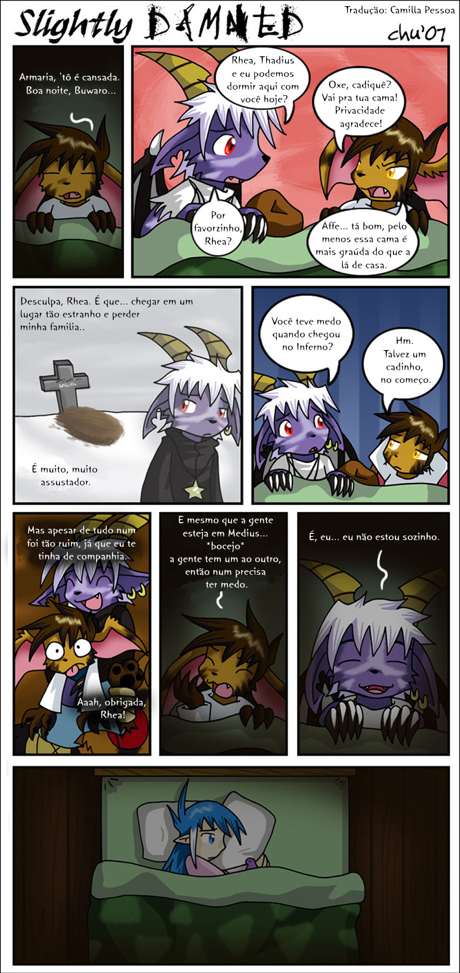 Hiya all! I'm gonna keep it short. July was a very busy month, and tomorrow I'll be off to another convention: Anthro Weekend Utah! I'm sorry I only managed to update Slightly Damned once this month. I did manage to get more pages done, but I decided I should wait until after I'm back from the convention to post more.