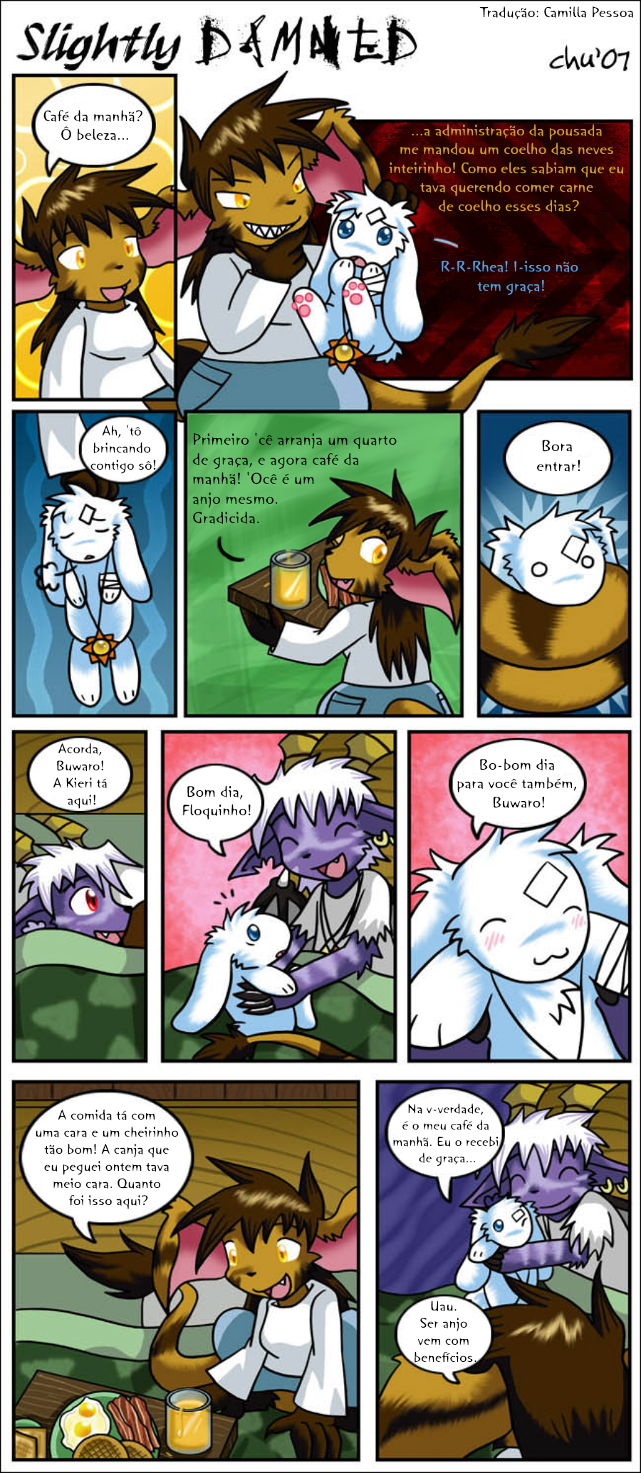 Hiya all! I'm gonna keep it short. July was a very busy month, and tomorrow I'll be off to another convention: Anthro Weekend Utah! I'm sorry I only managed to update Slightly Damned once this month. I did manage to get more pages done, but I decided I should wait until after I'm back from the convention to post more.