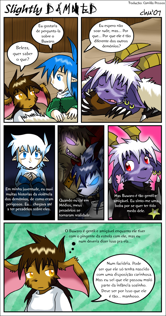 Hiya all! I'm gonna keep it short. July was a very busy month, and tomorrow I'll be off to another convention: Anthro Weekend Utah! I'm sorry I only managed to update Slightly Damned once this month. I did manage to get more pages done, but I decided I should wait until after I'm back from the convention to post more.