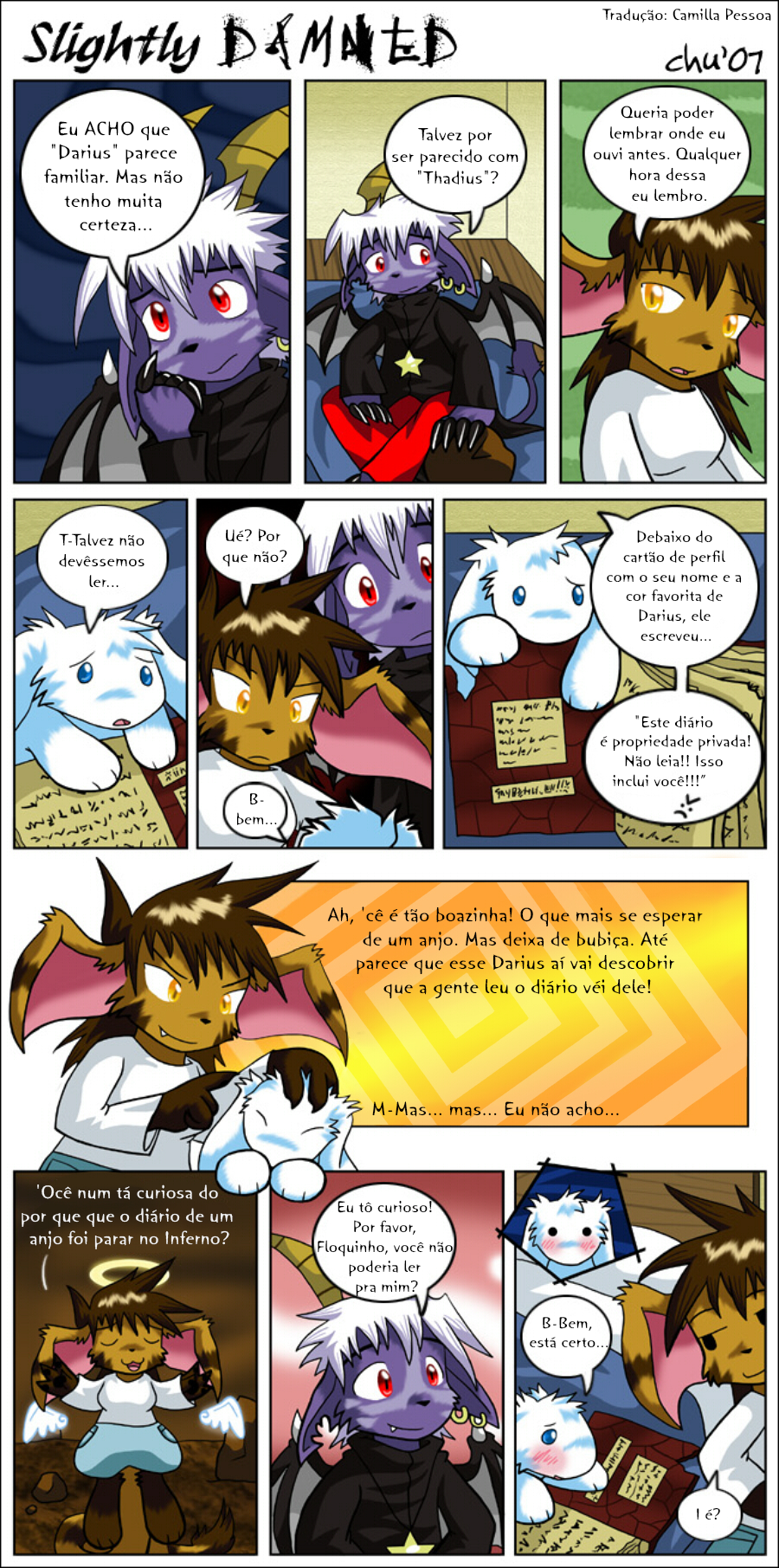 Hiya all! I'm gonna keep it short. July was a very busy month, and tomorrow I'll be off to another convention: Anthro Weekend Utah! I'm sorry I only managed to update Slightly Damned once this month. I did manage to get more pages done, but I decided I should wait until after I'm back from the convention to post more.