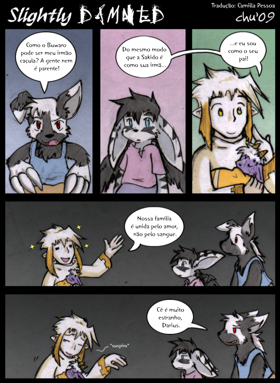 Hiya all! I'm gonna keep it short. July was a very busy month, and tomorrow I'll be off to another convention: Anthro Weekend Utah! I'm sorry I only managed to update Slightly Damned once this month. I did manage to get more pages done, but I decided I should wait until after I'm back from the convention to post more.