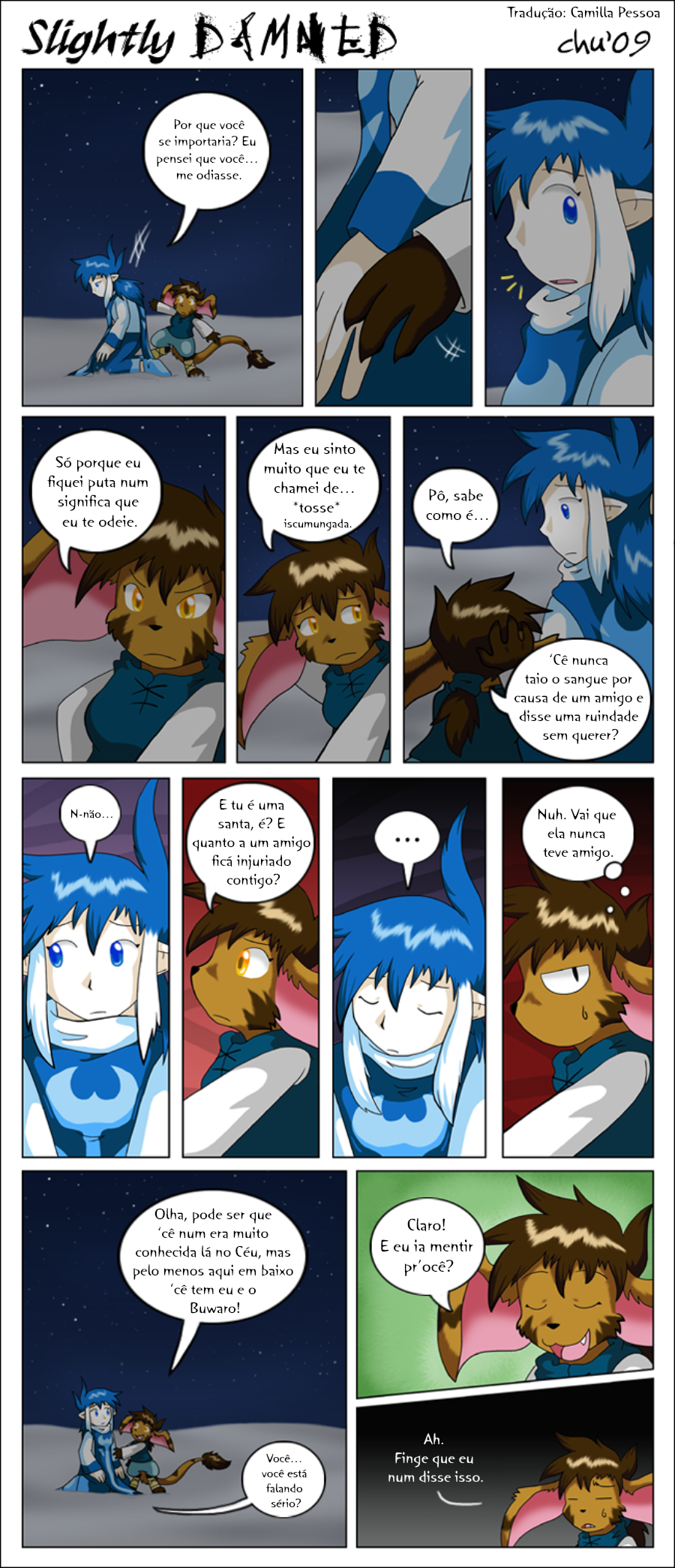 Hiya all! I'm gonna keep it short. July was a very busy month, and tomorrow I'll be off to another convention: Anthro Weekend Utah! I'm sorry I only managed to update Slightly Damned once this month. I did manage to get more pages done, but I decided I should wait until after I'm back from the convention to post more.
