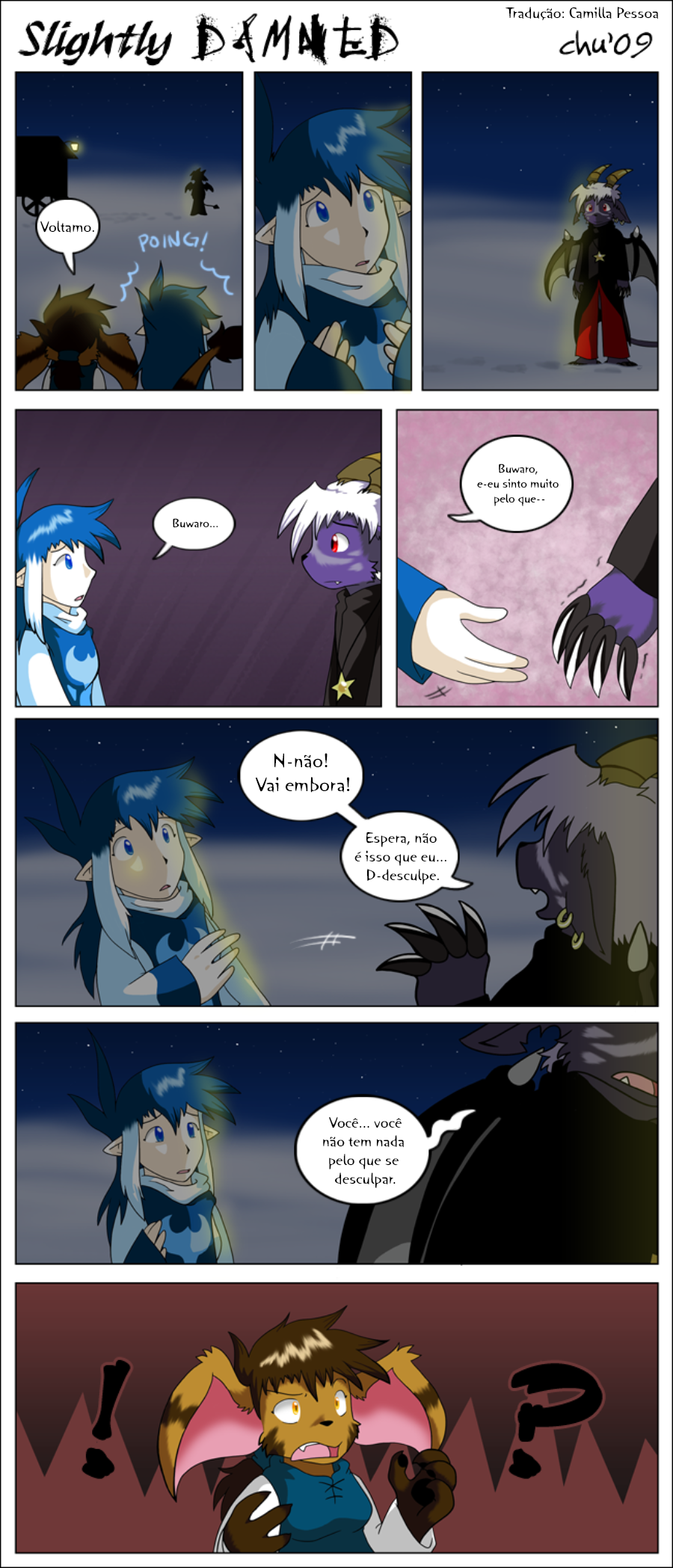 Hiya all! I'm gonna keep it short. July was a very busy month, and tomorrow I'll be off to another convention: Anthro Weekend Utah! I'm sorry I only managed to update Slightly Damned once this month. I did manage to get more pages done, but I decided I should wait until after I'm back from the convention to post more.