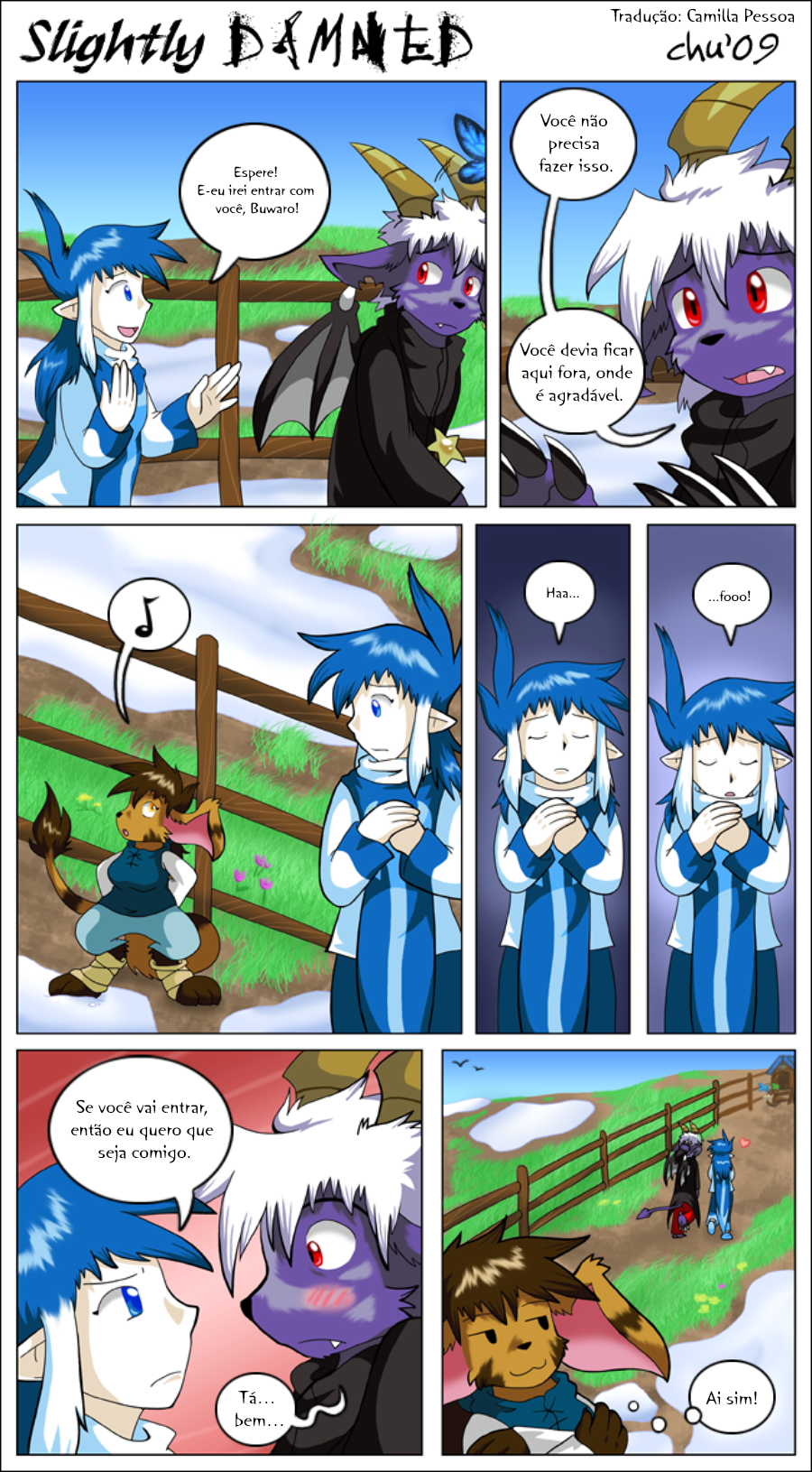 Hiya all! I'm gonna keep it short. July was a very busy month, and tomorrow I'll be off to another convention: Anthro Weekend Utah! I'm sorry I only managed to update Slightly Damned once this month. I did manage to get more pages done, but I decided I should wait until after I'm back from the convention to post more.