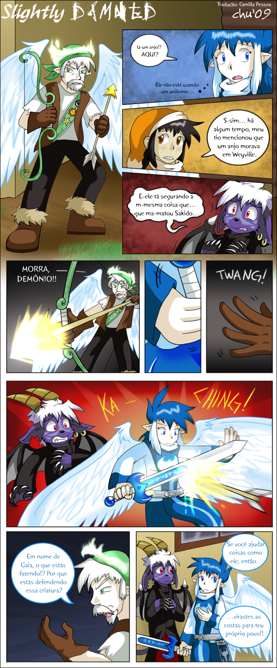 Hiya all! I'm gonna keep it short. July was a very busy month, and tomorrow I'll be off to another convention: Anthro Weekend Utah! I'm sorry I only managed to update Slightly Damned once this month. I did manage to get more pages done, but I decided I should wait until after I'm back from the convention to post more.