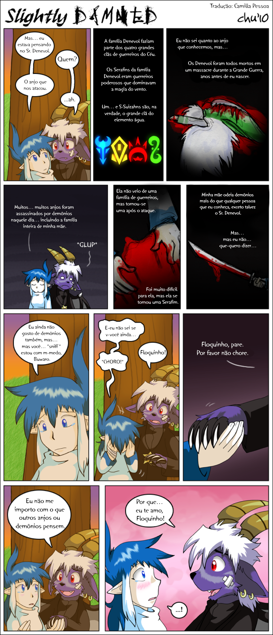 Hiya all! I'm gonna keep it short. July was a very busy month, and tomorrow I'll be off to another convention: Anthro Weekend Utah! I'm sorry I only managed to update Slightly Damned once this month. I did manage to get more pages done, but I decided I should wait until after I'm back from the convention to post more.