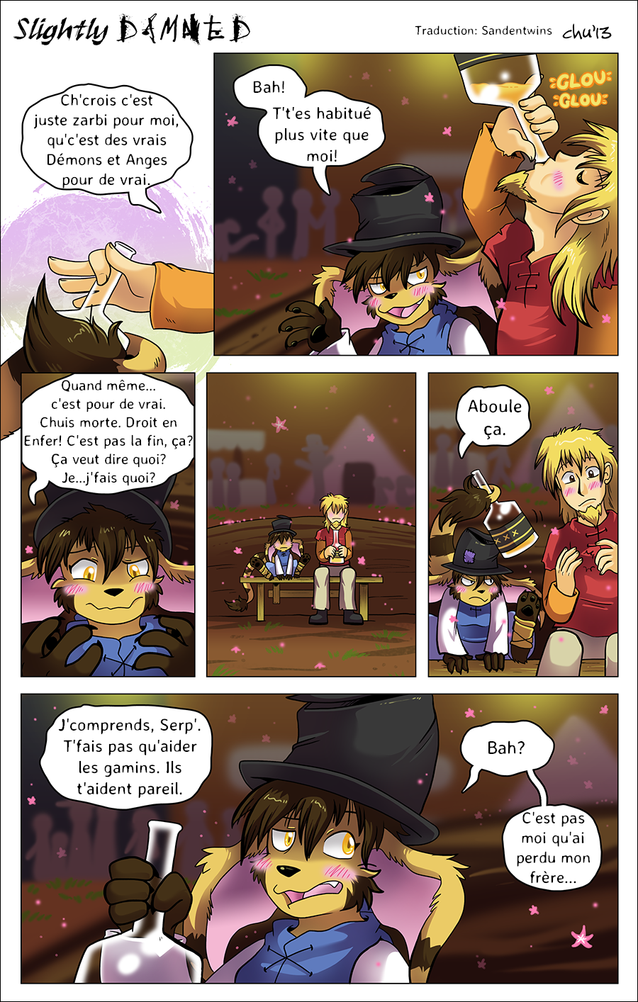 Hiya all! I'm gonna keep it short. July was a very busy month, and tomorrow I'll be off to another convention: Anthro Weekend Utah! I'm sorry I only managed to update Slightly Damned once this month. I did manage to get more pages done, but I decided I should wait until after I'm back from the convention to post more.