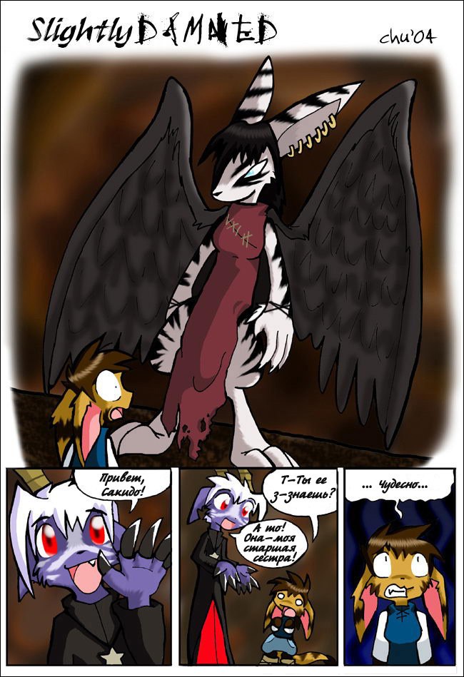 Hiya all! I'm gonna keep it short. July was a very busy month, and tomorrow I'll be off to another convention: Anthro Weekend Utah! I'm sorry I only managed to update Slightly Damned once this month. I did manage to get more pages done, but I decided I should wait until after I'm back from the convention to post more.
