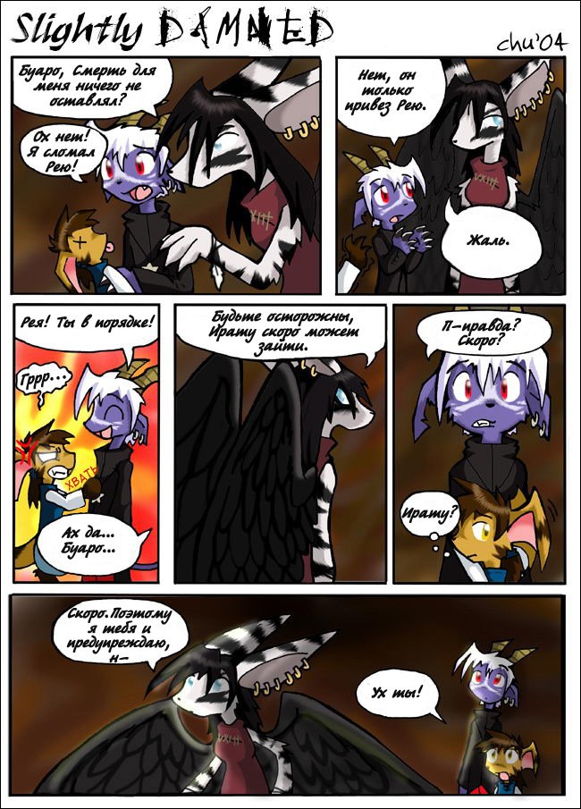 Hiya all! I'm gonna keep it short. July was a very busy month, and tomorrow I'll be off to another convention: Anthro Weekend Utah! I'm sorry I only managed to update Slightly Damned once this month. I did manage to get more pages done, but I decided I should wait until after I'm back from the convention to post more.