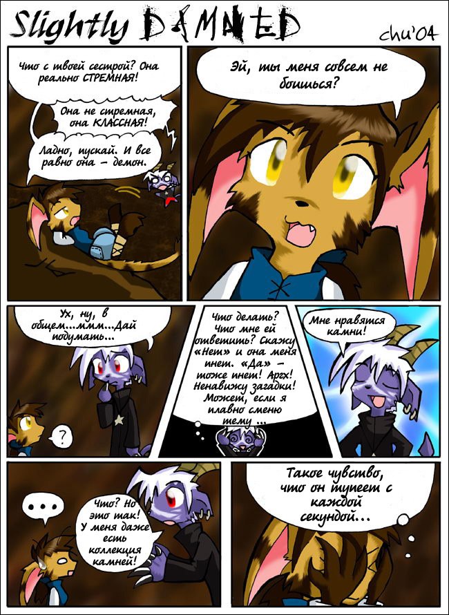 Hiya all! I'm gonna keep it short. July was a very busy month, and tomorrow I'll be off to another convention: Anthro Weekend Utah! I'm sorry I only managed to update Slightly Damned once this month. I did manage to get more pages done, but I decided I should wait until after I'm back from the convention to post more.