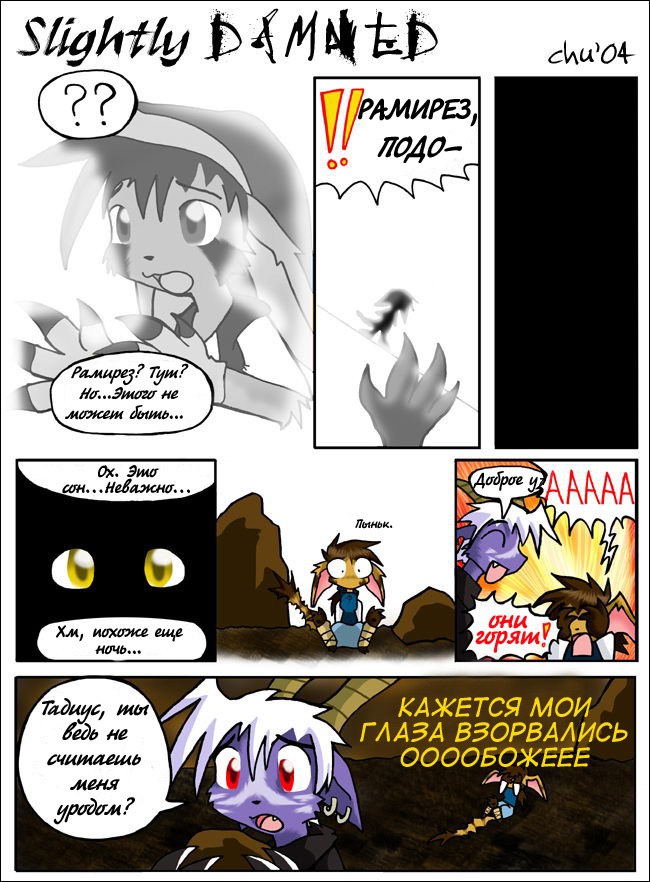 Hiya all! I'm gonna keep it short. July was a very busy month, and tomorrow I'll be off to another convention: Anthro Weekend Utah! I'm sorry I only managed to update Slightly Damned once this month. I did manage to get more pages done, but I decided I should wait until after I'm back from the convention to post more.