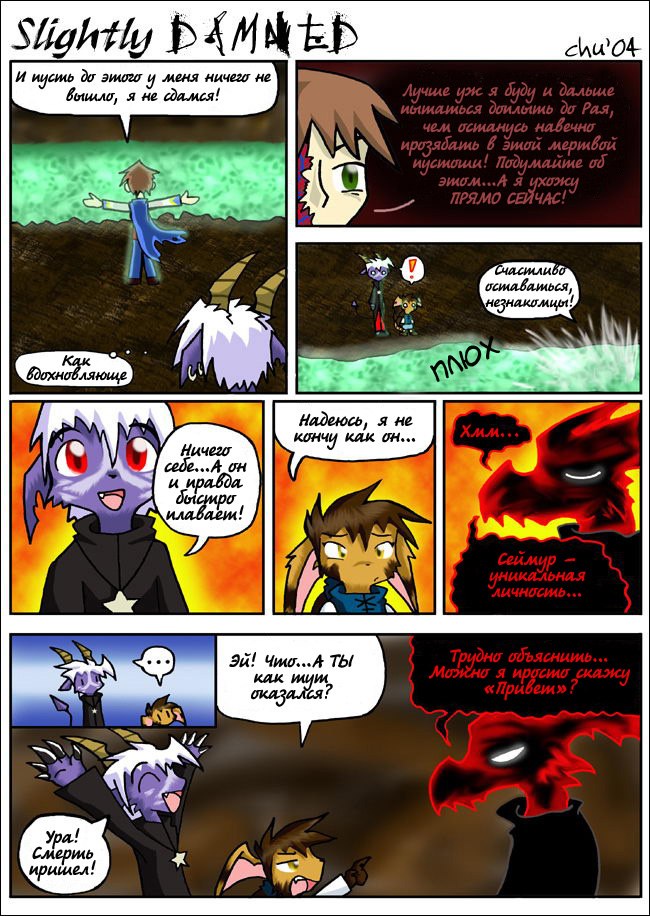 Hiya all! I'm gonna keep it short. July was a very busy month, and tomorrow I'll be off to another convention: Anthro Weekend Utah! I'm sorry I only managed to update Slightly Damned once this month. I did manage to get more pages done, but I decided I should wait until after I'm back from the convention to post more.