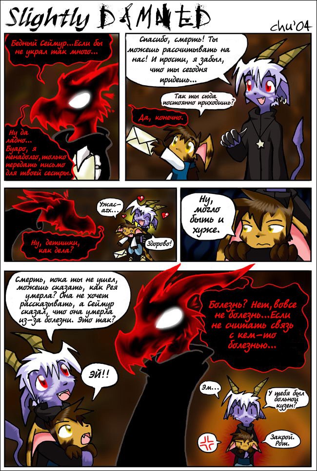 Hiya all! I'm gonna keep it short. July was a very busy month, and tomorrow I'll be off to another convention: Anthro Weekend Utah! I'm sorry I only managed to update Slightly Damned once this month. I did manage to get more pages done, but I decided I should wait until after I'm back from the convention to post more.