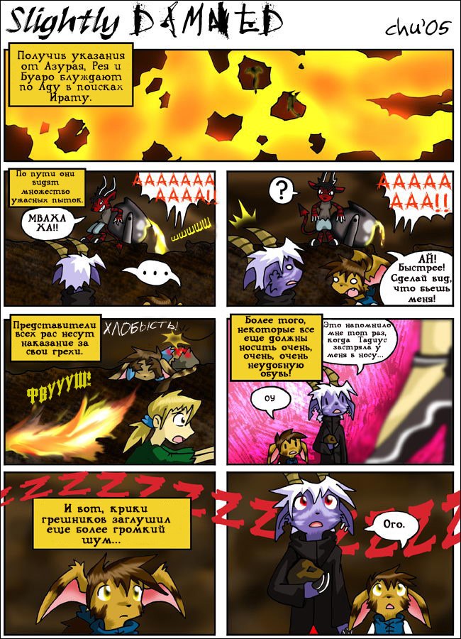 Hiya all! I'm gonna keep it short. July was a very busy month, and tomorrow I'll be off to another convention: Anthro Weekend Utah! I'm sorry I only managed to update Slightly Damned once this month. I did manage to get more pages done, but I decided I should wait until after I'm back from the convention to post more.