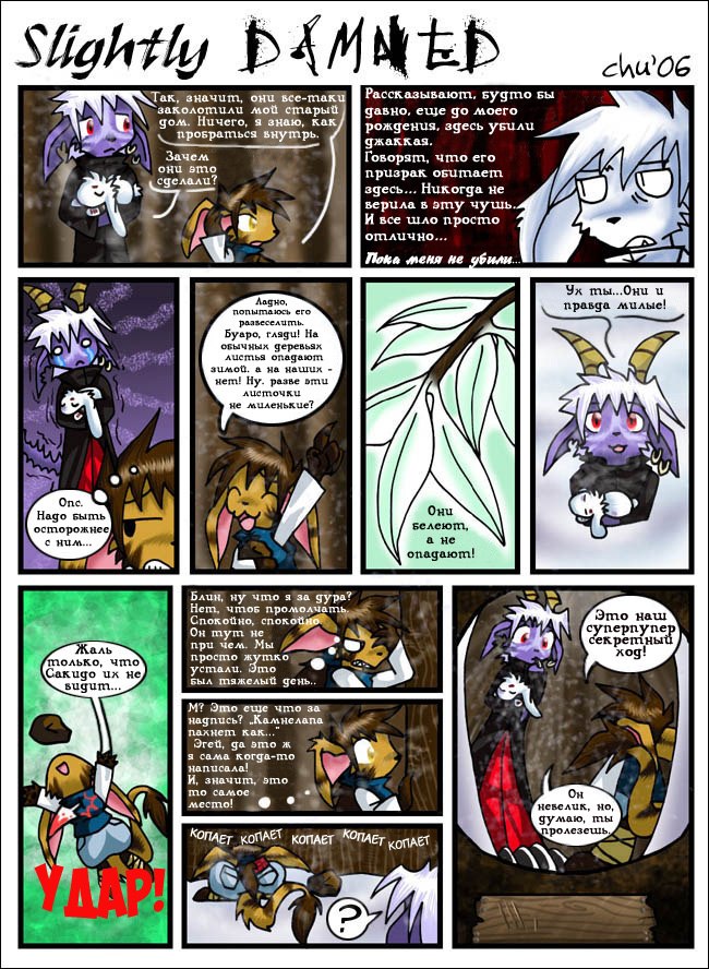 Hiya all! I'm gonna keep it short. July was a very busy month, and tomorrow I'll be off to another convention: Anthro Weekend Utah! I'm sorry I only managed to update Slightly Damned once this month. I did manage to get more pages done, but I decided I should wait until after I'm back from the convention to post more.