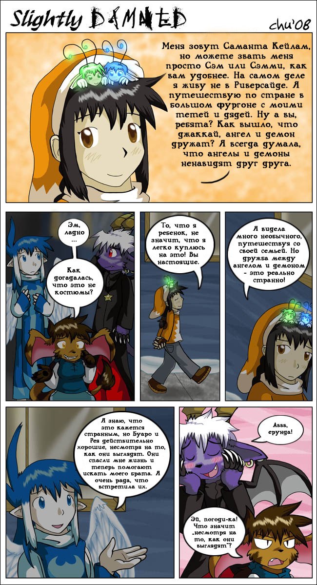 Hiya all! I'm gonna keep it short. July was a very busy month, and tomorrow I'll be off to another convention: Anthro Weekend Utah! I'm sorry I only managed to update Slightly Damned once this month. I did manage to get more pages done, but I decided I should wait until after I'm back from the convention to post more.