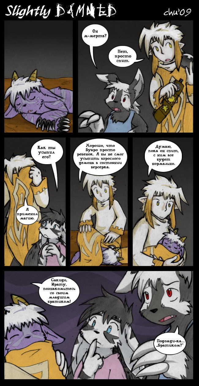 Hiya all! I'm gonna keep it short. July was a very busy month, and tomorrow I'll be off to another convention: Anthro Weekend Utah! I'm sorry I only managed to update Slightly Damned once this month. I did manage to get more pages done, but I decided I should wait until after I'm back from the convention to post more.