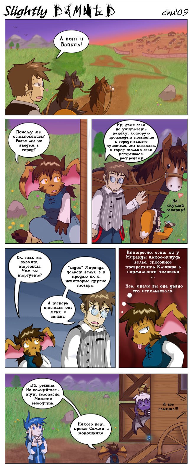 Hiya all! I'm gonna keep it short. July was a very busy month, and tomorrow I'll be off to another convention: Anthro Weekend Utah! I'm sorry I only managed to update Slightly Damned once this month. I did manage to get more pages done, but I decided I should wait until after I'm back from the convention to post more.
