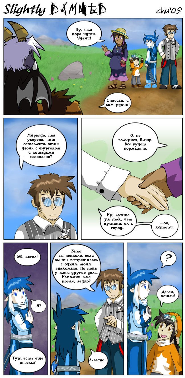 Hiya all! I'm gonna keep it short. July was a very busy month, and tomorrow I'll be off to another convention: Anthro Weekend Utah! I'm sorry I only managed to update Slightly Damned once this month. I did manage to get more pages done, but I decided I should wait until after I'm back from the convention to post more.