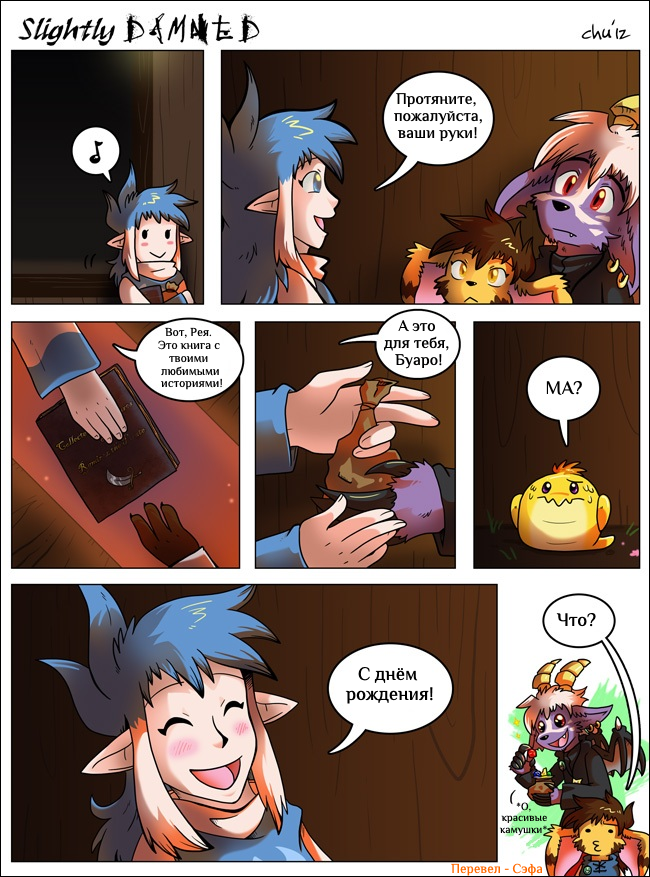Hiya all! I'm gonna keep it short. July was a very busy month, and tomorrow I'll be off to another convention: Anthro Weekend Utah! I'm sorry I only managed to update Slightly Damned once this month. I did manage to get more pages done, but I decided I should wait until after I'm back from the convention to post more.
