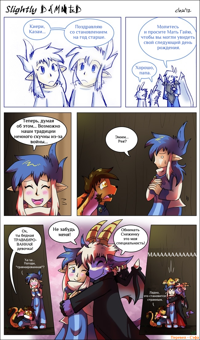 Hiya all! I'm gonna keep it short. July was a very busy month, and tomorrow I'll be off to another convention: Anthro Weekend Utah! I'm sorry I only managed to update Slightly Damned once this month. I did manage to get more pages done, but I decided I should wait until after I'm back from the convention to post more.