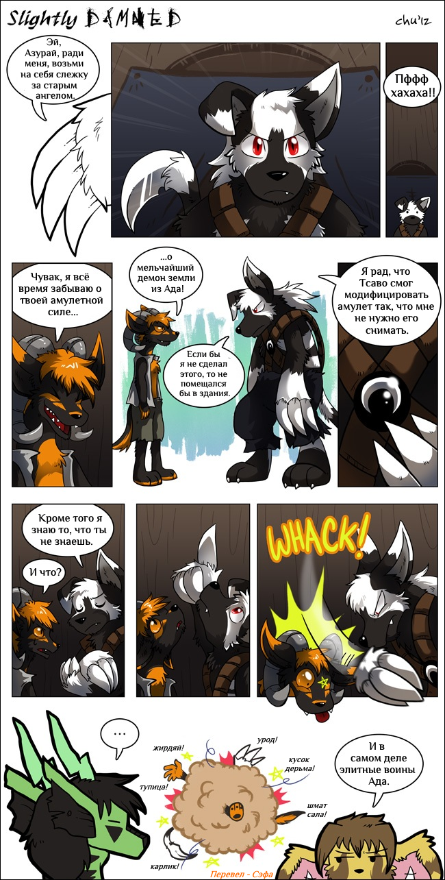 Hiya all! I'm gonna keep it short. July was a very busy month, and tomorrow I'll be off to another convention: Anthro Weekend Utah! I'm sorry I only managed to update Slightly Damned once this month. I did manage to get more pages done, but I decided I should wait until after I'm back from the convention to post more.