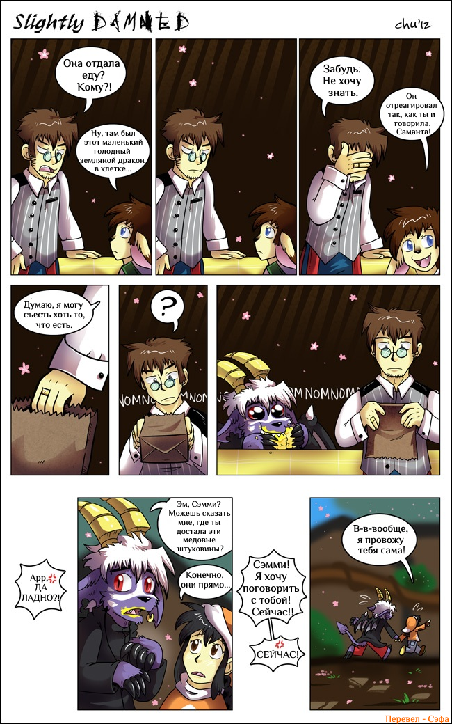 Hiya all! I'm gonna keep it short. July was a very busy month, and tomorrow I'll be off to another convention: Anthro Weekend Utah! I'm sorry I only managed to update Slightly Damned once this month. I did manage to get more pages done, but I decided I should wait until after I'm back from the convention to post more.