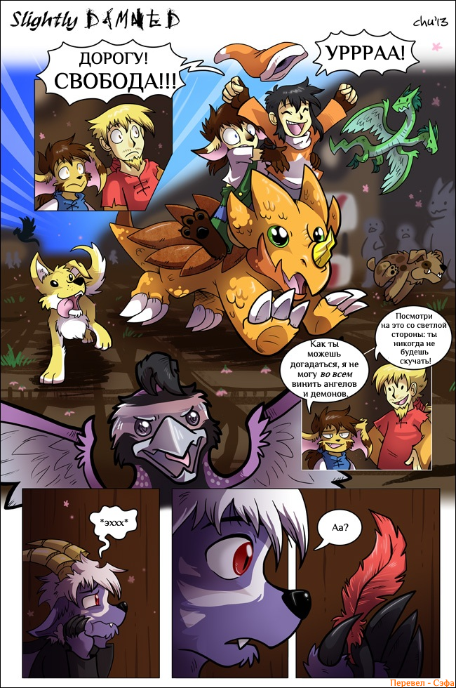 Hiya all! I'm gonna keep it short. July was a very busy month, and tomorrow I'll be off to another convention: Anthro Weekend Utah! I'm sorry I only managed to update Slightly Damned once this month. I did manage to get more pages done, but I decided I should wait until after I'm back from the convention to post more.