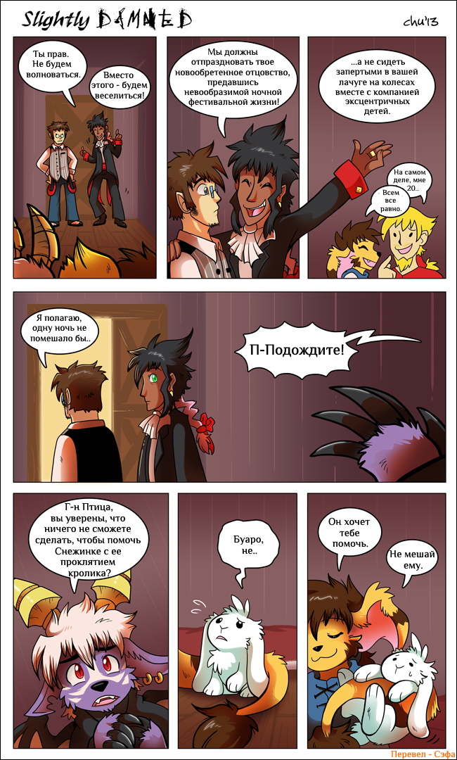 Hiya all! I'm gonna keep it short. July was a very busy month, and tomorrow I'll be off to another convention: Anthro Weekend Utah! I'm sorry I only managed to update Slightly Damned once this month. I did manage to get more pages done, but I decided I should wait until after I'm back from the convention to post more.