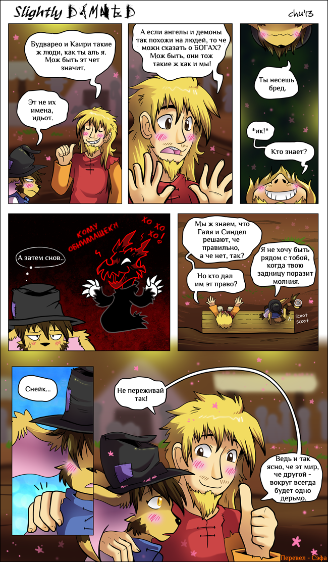 Hiya all! I'm gonna keep it short. July was a very busy month, and tomorrow I'll be off to another convention: Anthro Weekend Utah! I'm sorry I only managed to update Slightly Damned once this month. I did manage to get more pages done, but I decided I should wait until after I'm back from the convention to post more.