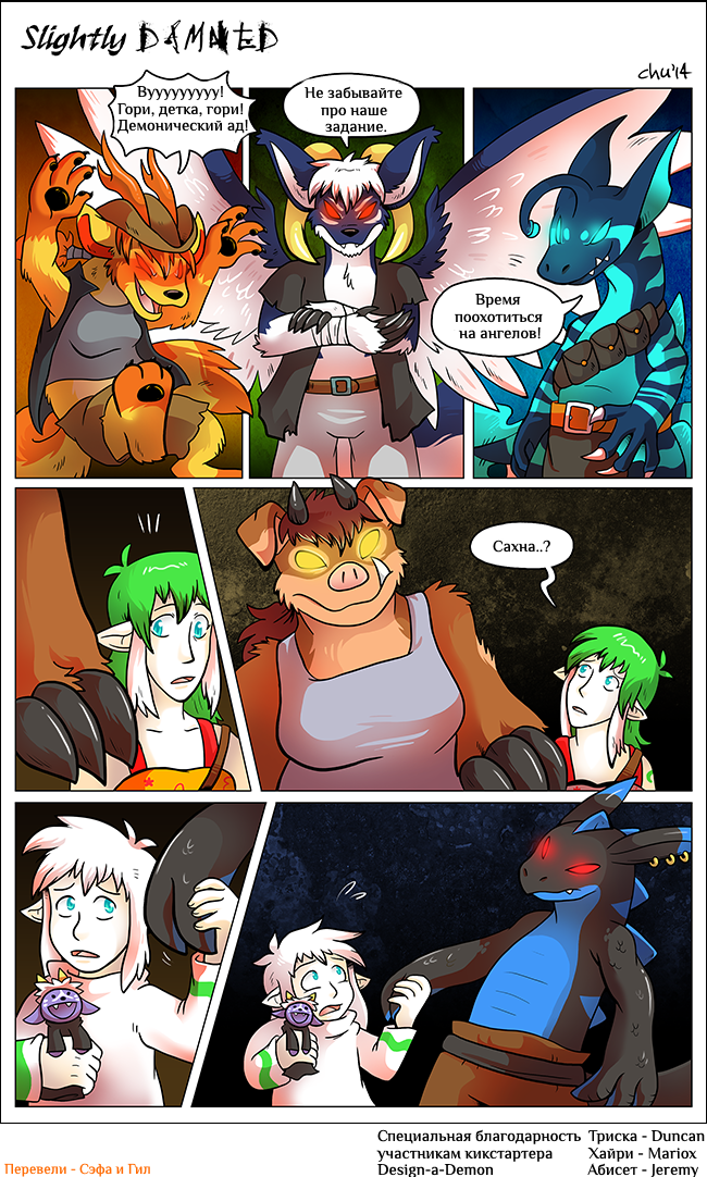 Hiya all! I'm gonna keep it short. July was a very busy month, and tomorrow I'll be off to another convention: Anthro Weekend Utah! I'm sorry I only managed to update Slightly Damned once this month. I did manage to get more pages done, but I decided I should wait until after I'm back from the convention to post more.
