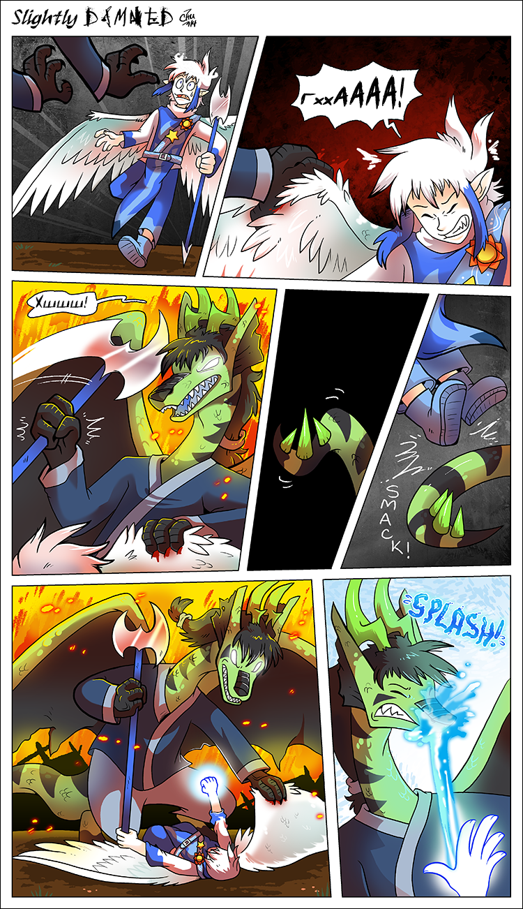Hiya all! I'm gonna keep it short. July was a very busy month, and tomorrow I'll be off to another convention: Anthro Weekend Utah! I'm sorry I only managed to update Slightly Damned once this month. I did manage to get more pages done, but I decided I should wait until after I'm back from the convention to post more.