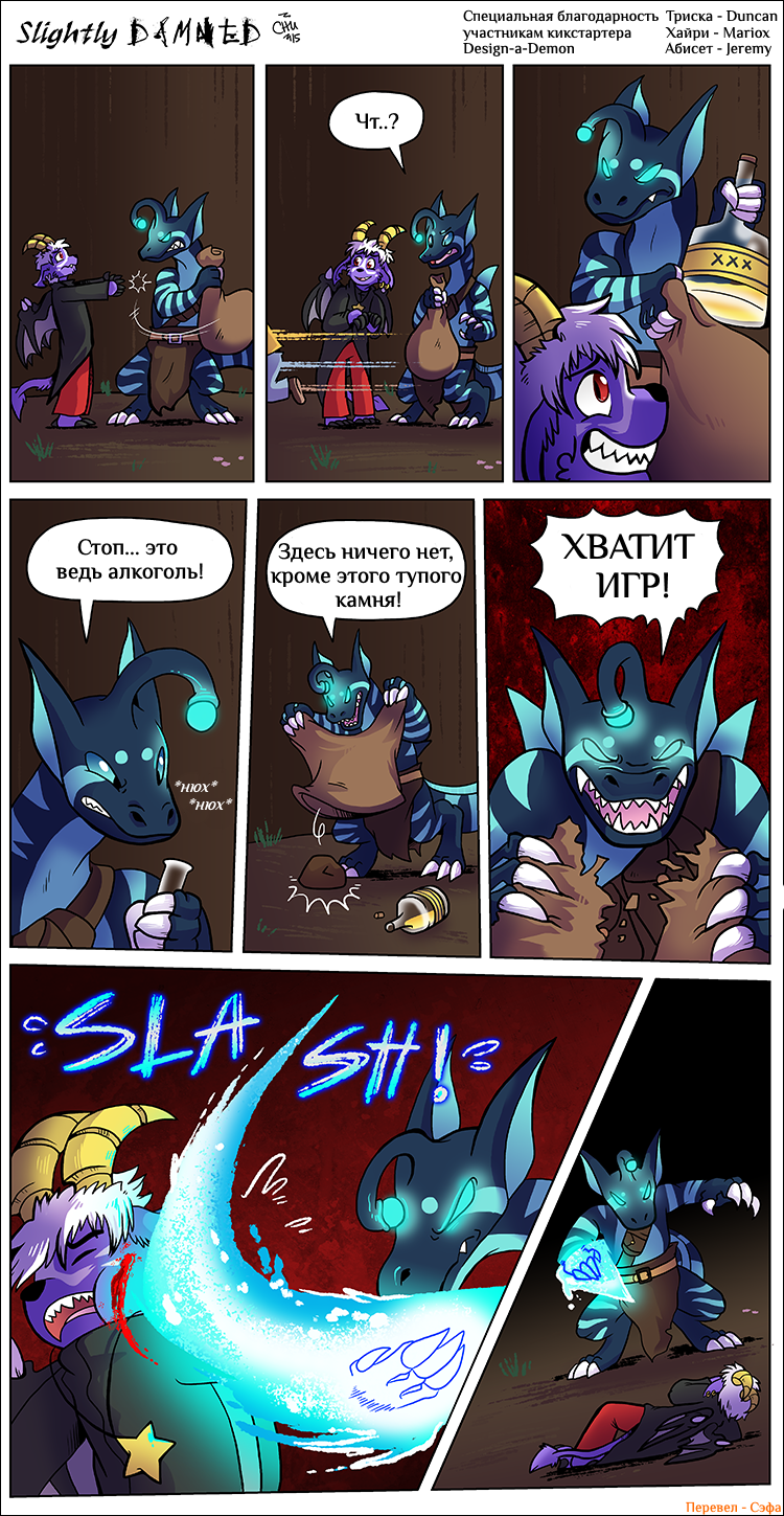 Hiya all! I'm gonna keep it short. July was a very busy month, and tomorrow I'll be off to another convention: Anthro Weekend Utah! I'm sorry I only managed to update Slightly Damned once this month. I did manage to get more pages done, but I decided I should wait until after I'm back from the convention to post more.