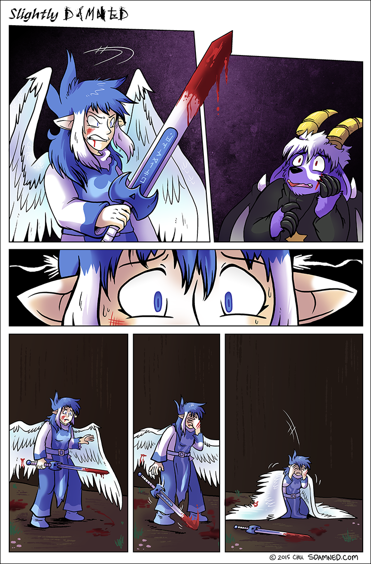 Hiya all! I'm gonna keep it short. July was a very busy month, and tomorrow I'll be off to another convention: Anthro Weekend Utah! I'm sorry I only managed to update Slightly Damned once this month. I did manage to get more pages done, but I decided I should wait until after I'm back from the convention to post more.