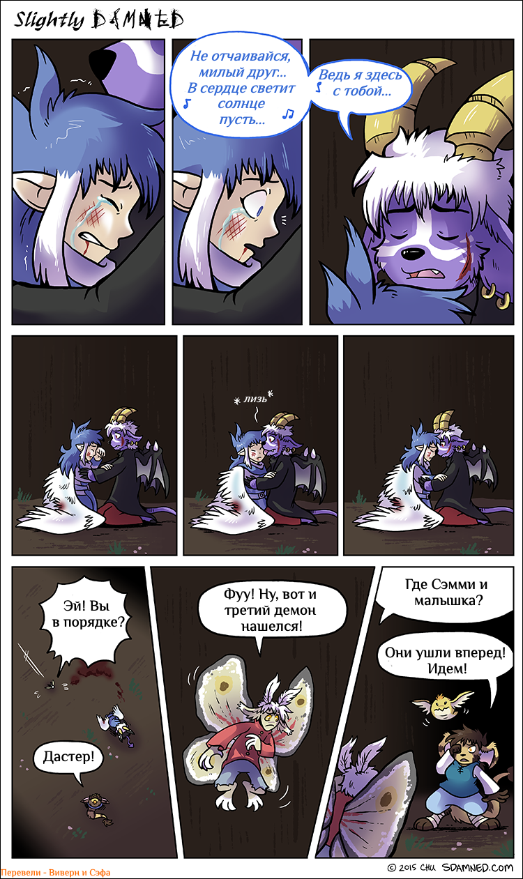 Hiya all! I'm gonna keep it short. July was a very busy month, and tomorrow I'll be off to another convention: Anthro Weekend Utah! I'm sorry I only managed to update Slightly Damned once this month. I did manage to get more pages done, but I decided I should wait until after I'm back from the convention to post more.