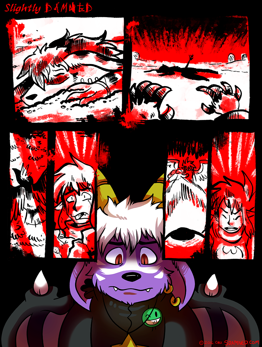 Hiya all! I'm gonna keep it short. July was a very busy month, and tomorrow I'll be off to another convention: Anthro Weekend Utah! I'm sorry I only managed to update Slightly Damned once this month. I did manage to get more pages done, but I decided I should wait until after I'm back from the convention to post more.