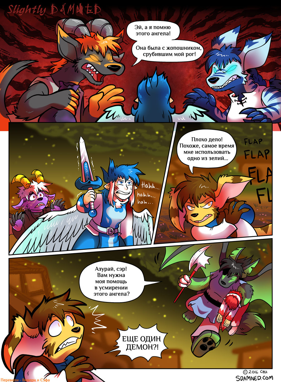 Hiya all! I'm gonna keep it short. July was a very busy month, and tomorrow I'll be off to another convention: Anthro Weekend Utah! I'm sorry I only managed to update Slightly Damned once this month. I did manage to get more pages done, but I decided I should wait until after I'm back from the convention to post more.