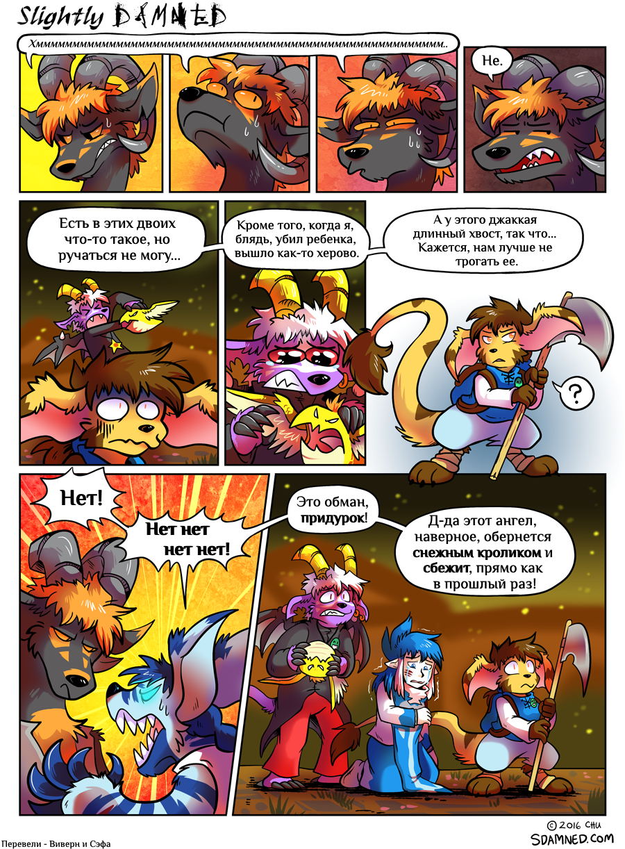 Hiya all! I'm gonna keep it short. July was a very busy month, and tomorrow I'll be off to another convention: Anthro Weekend Utah! I'm sorry I only managed to update Slightly Damned once this month. I did manage to get more pages done, but I decided I should wait until after I'm back from the convention to post more.
